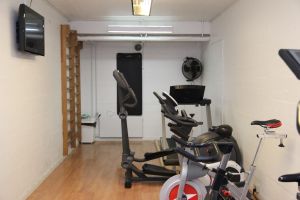 Fitnessrummet har to løbebånd, nogle cykler, crosstrainer og igen diverse flere maskiner, som alle findes på billederne.