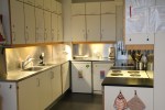 Hver etage har to store køkkener. Der er derfor 12 mennesker om ét køkken, som skal deles om 8 kogeplader og én ovn. Det lyder af lidt, men der er ofte få brugere af køkkenet ad gangen.